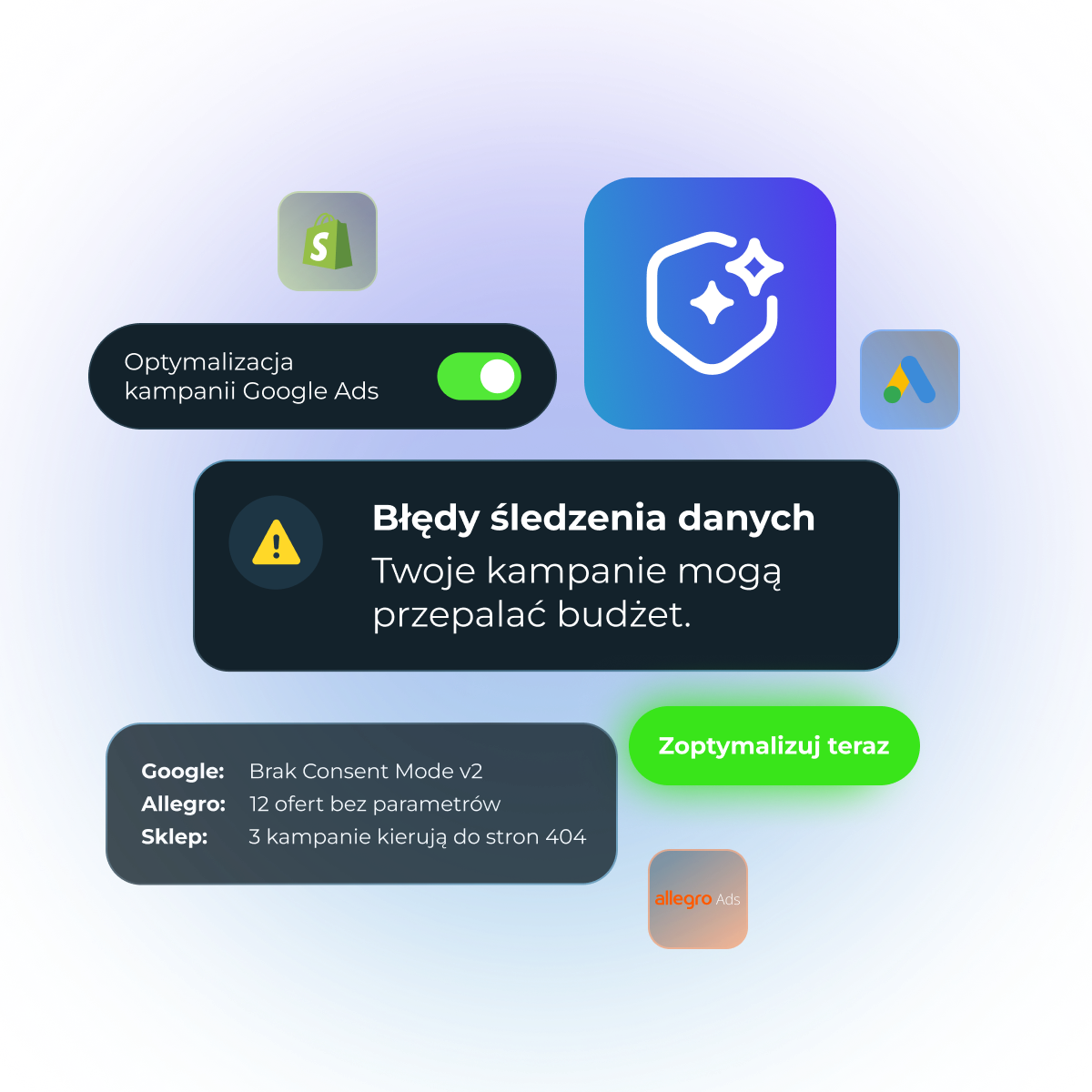 Senvio automatycznie identyfikuje krytyczne błędy w śledzeniu, kampaniach i danych produktowych — od braków parametrów, przez problemy z consent mode, po błędne linki i niezgodności ofert. Dzięki temu eliminujesz sytuacje, w których kampanie działają, ale dane są niepełne lub budżet jest przepalany bez efektu.