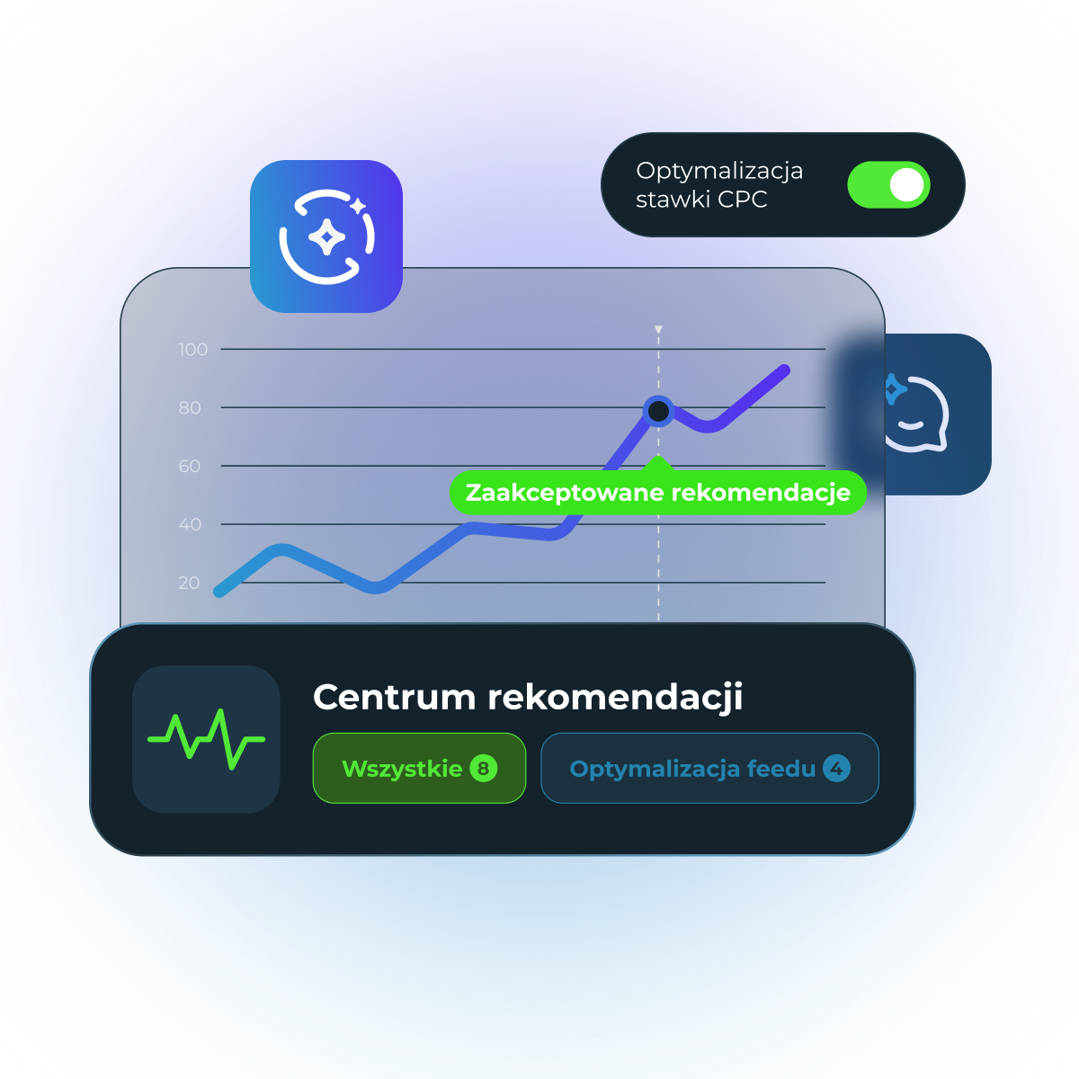 Każda rekomendacja wymaga Twojej akceptacji. Nic nie dzieje się automatycznie bez Twojej wiedzy. Po zatwierdzeniu system sam wdraża zmiany — bez ręcznego klikania i bez ryzyka niekontrolowanych modyfikacji. To automatyzacja, która działa pod Twoją kontrolą.