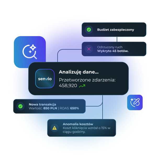 Senvio automatycznie zbiera wszystkie dane sprzedażowe, reklamowe i eventy, a następnie analizuje je w czasie rzeczywistym.